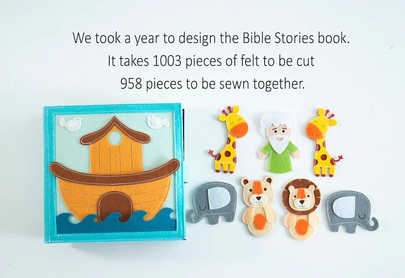 ✝️Celebrating Easter by bringing you the Child’s first Bible book. Your gift from God can start learning the stories of the good book with our own Handmade Bible stories quiet book, with handmade felt characters that can help bring the stories to life.