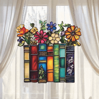 🌺📚Flower Book Suncatcher Window Hanging